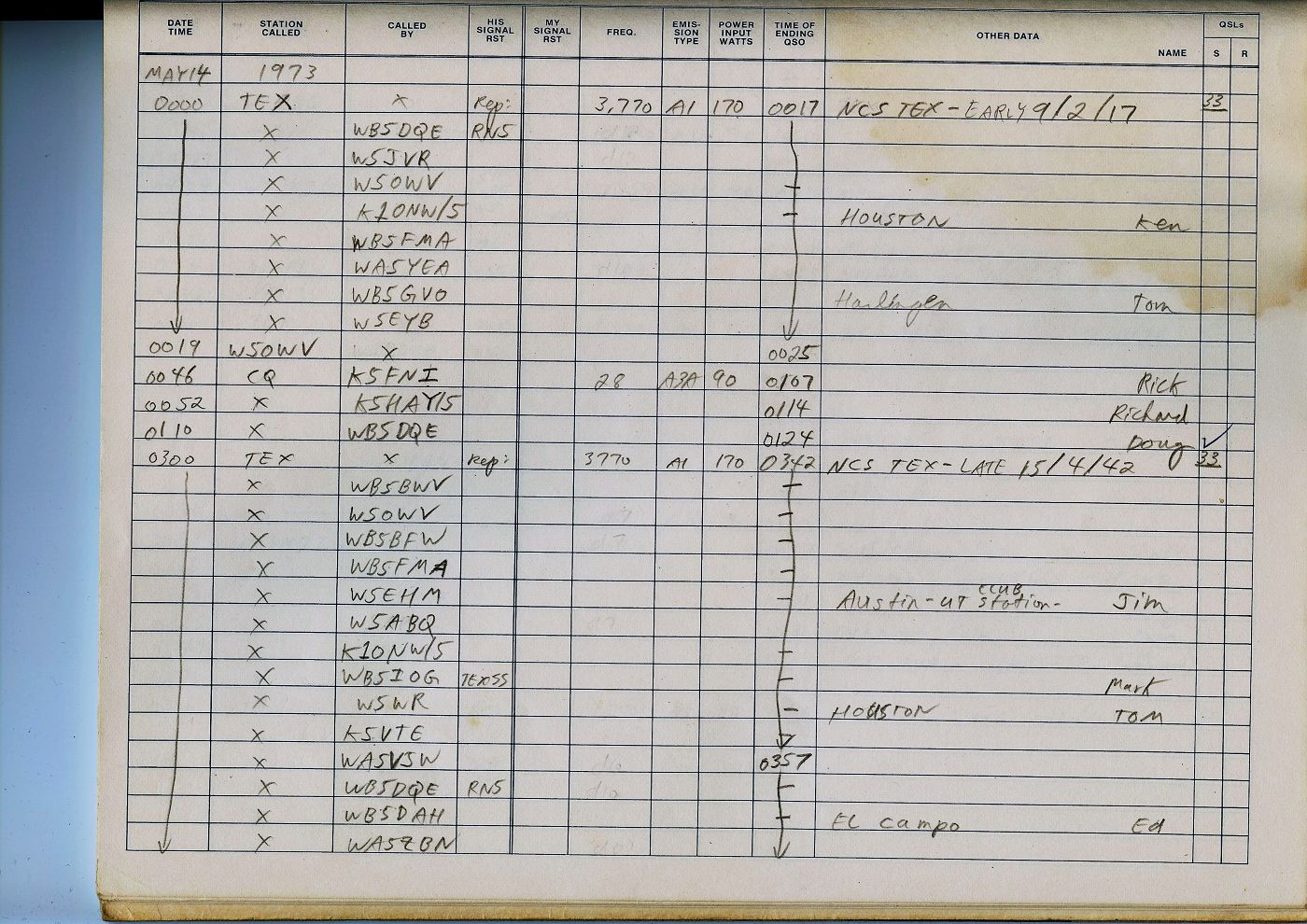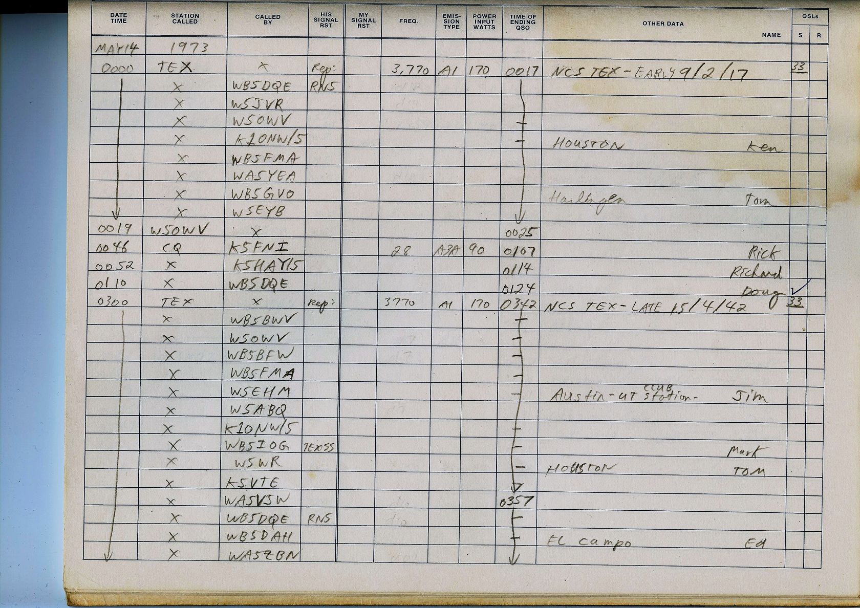 First Contact WA5ZBJ - K5FNI 14 May 1973