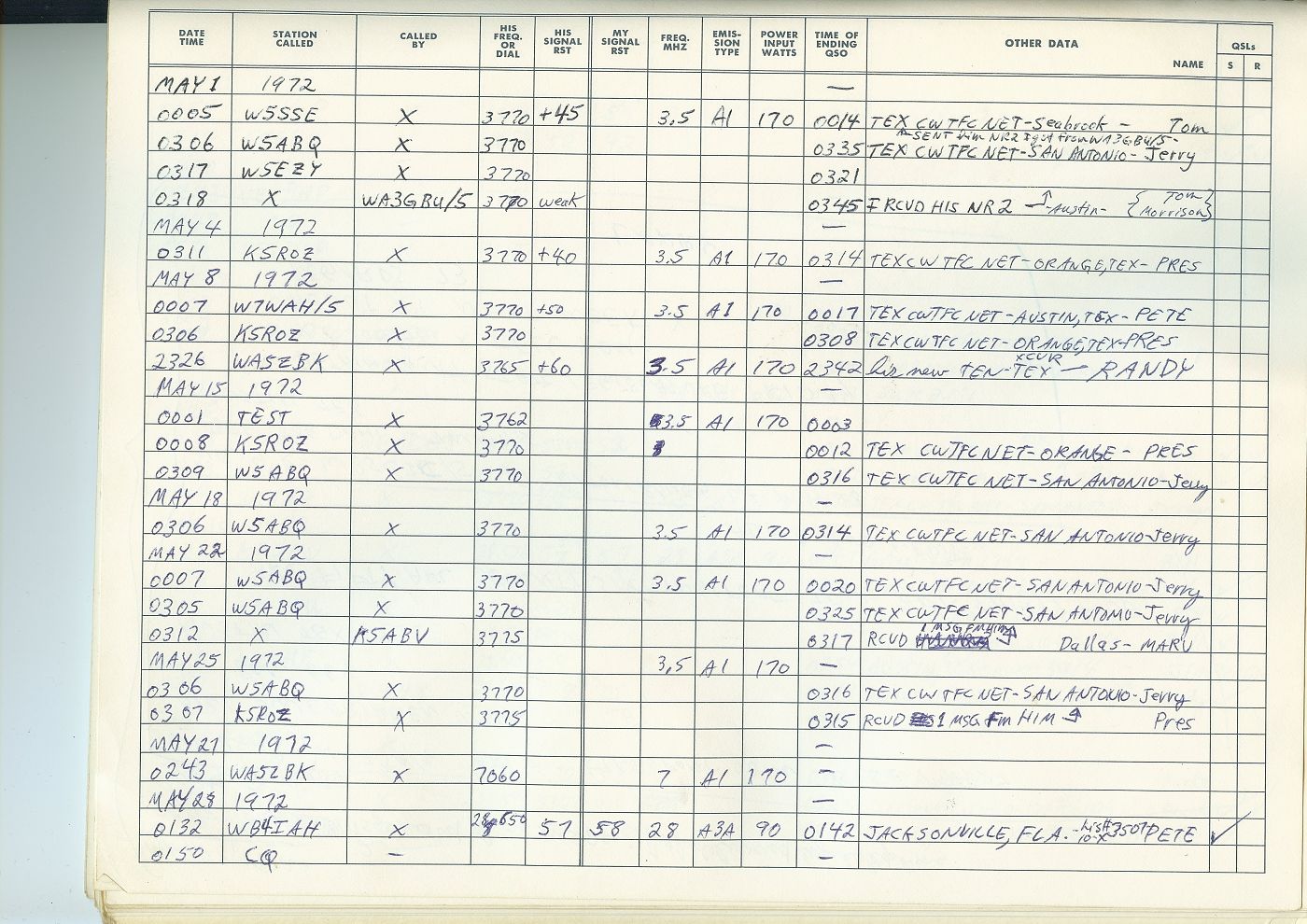 First Contact WA5ZBJ - W7WAH 8 May 1972